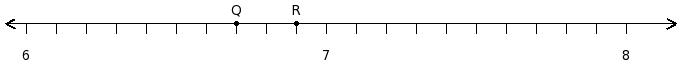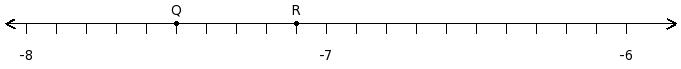Find the product of the rational numbers at the points labelled with letters Q and R