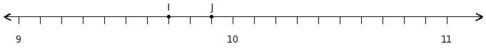 Find the product of the rational numbers at the points labelled with letters I and J