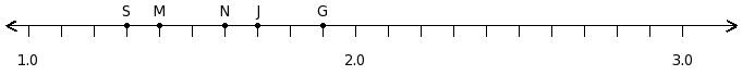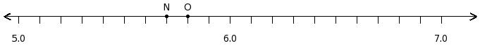 Find the sum of the decimal numbers at the points labelled with letters N and O