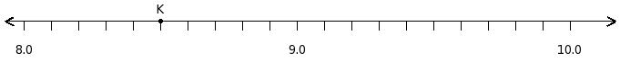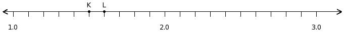 Find the difference of the decimal numbers at the points labelled with letters K and L