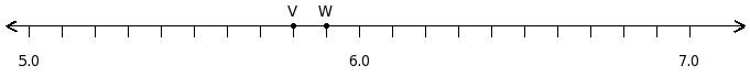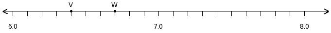 Find the product of the decimal numbers at the points labelled with letters V and W