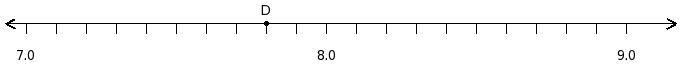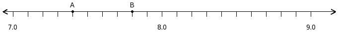 Find the sum of the decimal numbers at the points labelled with letters A and B