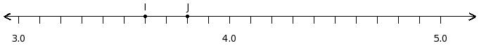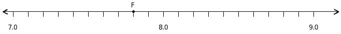 Find the difference of the decimal numbers at the points labelled with letters I and J