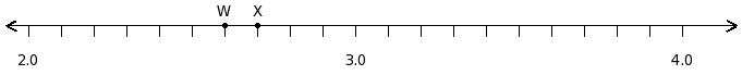 Find the product of the decimal numbers at the points labelled with letters W and X