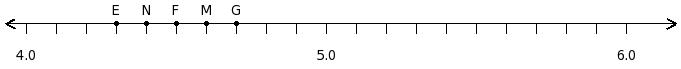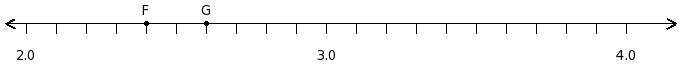 Find the sum of the decimal numbers at the points labelled with letters F and G