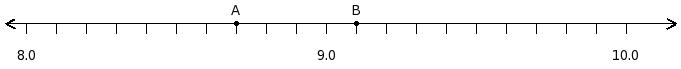 Find the position of the decimal number 8.6 on the number line