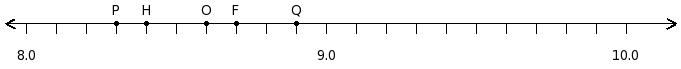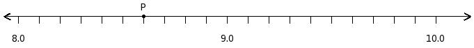 Find the decimal number at the point labelled with letter P