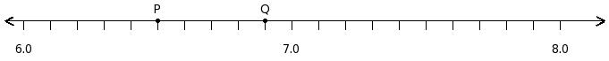 Find the sum of the decimal numbers at the points labelled with letters P and Q