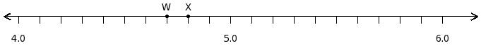 Find the difference of the decimal numbers at the points labelled with letters W and X