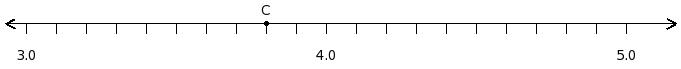 Find the decimal number at the point labelled with letter C