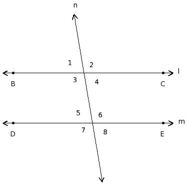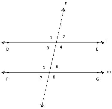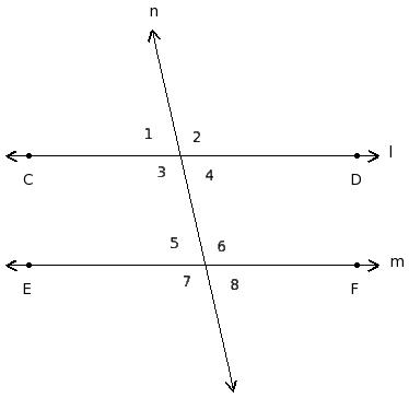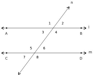 ∠1 , ∠5 ; ∠2 , ∠6 ; ∠3 , ∠7 ; ∠4 , ∠8