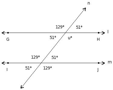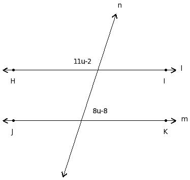 In the given figure l ∥ m. Find the value of 'u'