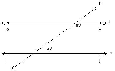 In the given figure l ∥ m. Find the value of 'v'