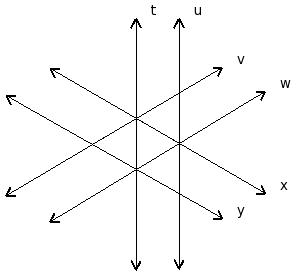 In the given figure, t , u , v , w , x , y are lines in a plane. By looking at the figure, which of the following are true?