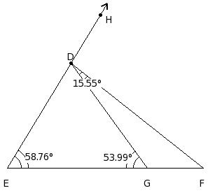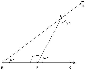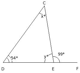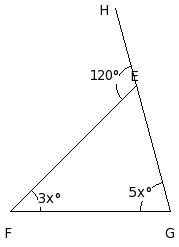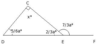 In the given figure, △CDE in which side DE has been produced to F. If ∠ECD = x° , ∠CDE = (5/6a)° , ∠DEC = (2/3a)° and ∠CEF = (7/3a)°, find the values of a and x.