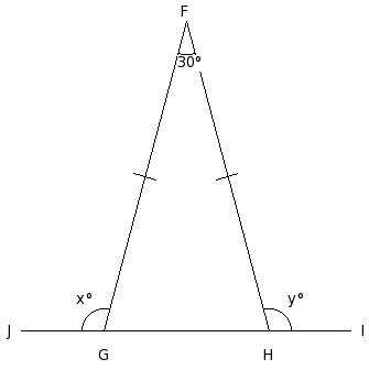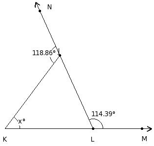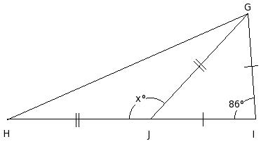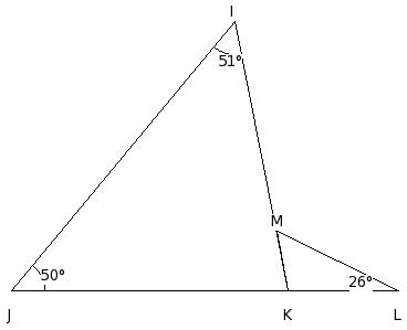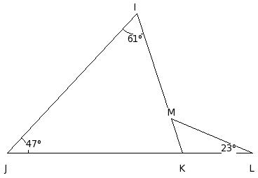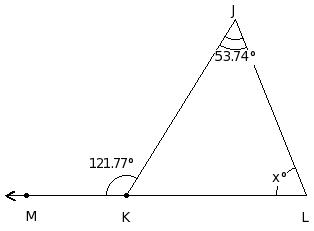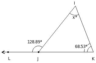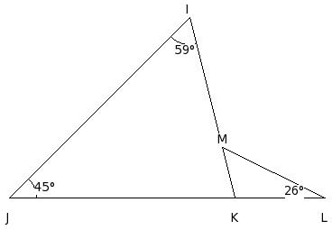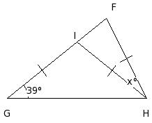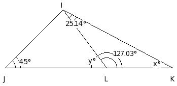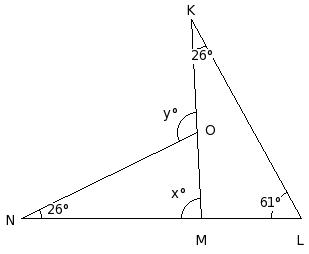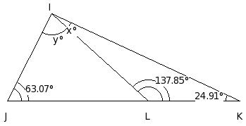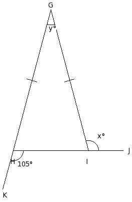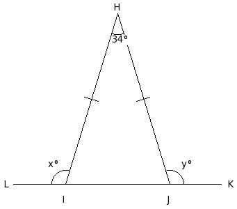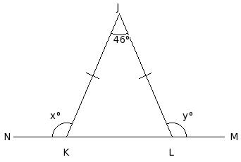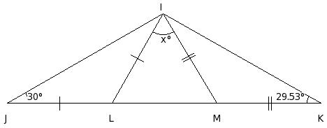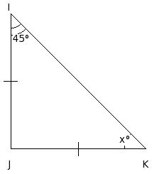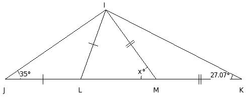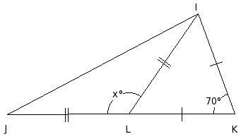 In the given figure, if LI = JL and IM = MK , find the value of x.