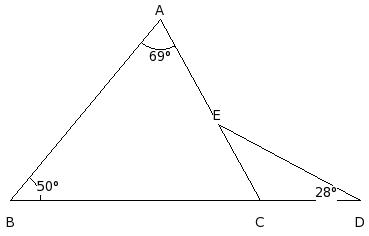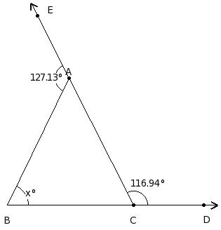In the following figure, one side of a triangle has been produced. Find all the angles of the triangle