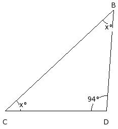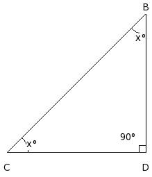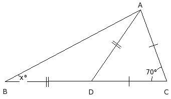 In the given figure, if CA = CD = DB, find the value of x