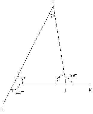 Find the unknown marked angles in the following figure