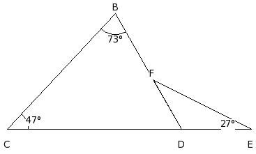Two angles of a triangle measure 67° and 56° respectively. Find the measure of the third angle of the triangle