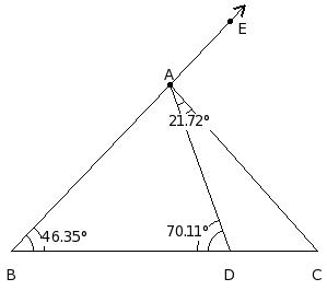 The angles of a triangle ABC are in the ratio 3 : 8 : 25. Find the measure of each angle of the triangle