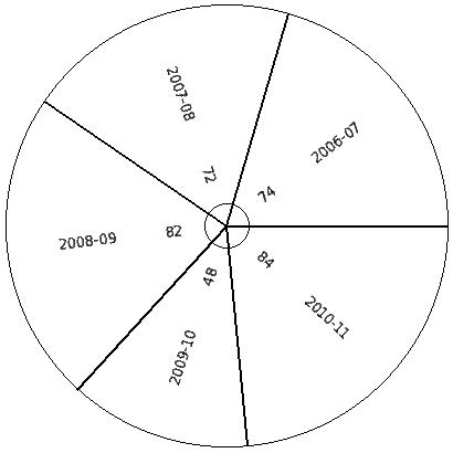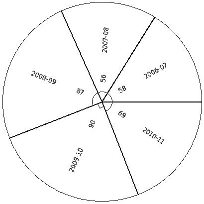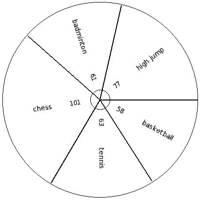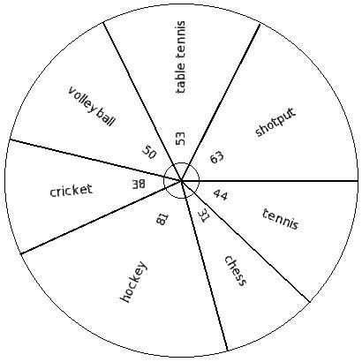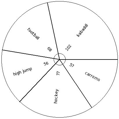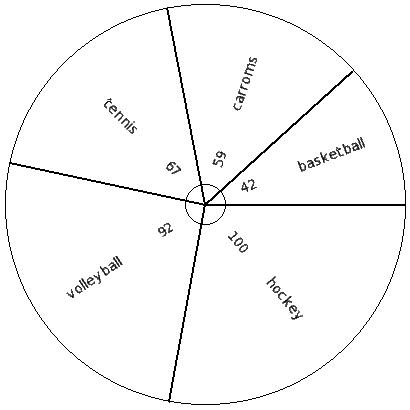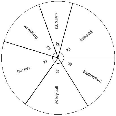 The following pie chart gives the data regarding the favourite sport of 387 students of a school. Identify the table for the given pie diagram.