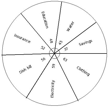 The following pie chart shows the monthly budget of a family. Identify the table for the given pie diagram.