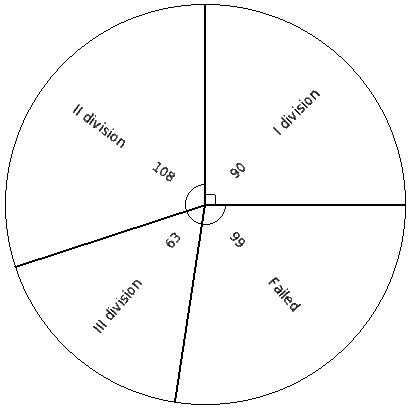 The results declared by a school was as under. Identify the table for the given pie diagram.