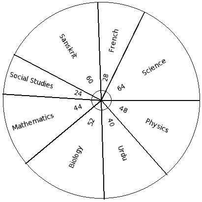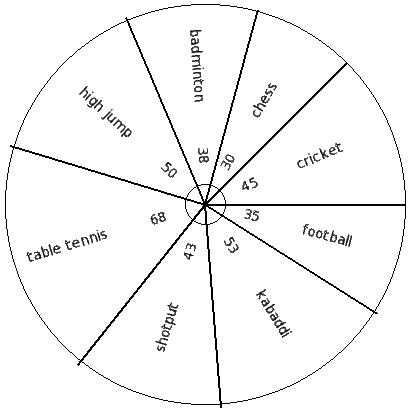 The following table shows 666 students of a school participating in various games. Find the pie chart sector angle for "chess"