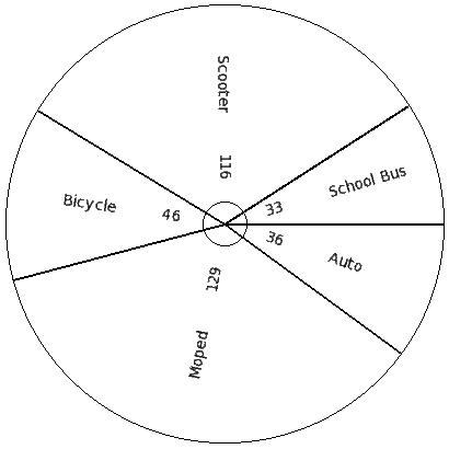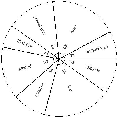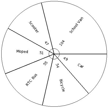 450 students of a certain locality use different modes of travel to school as shown below. Find the pie chart sector angle for "Car"