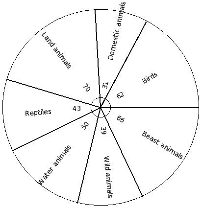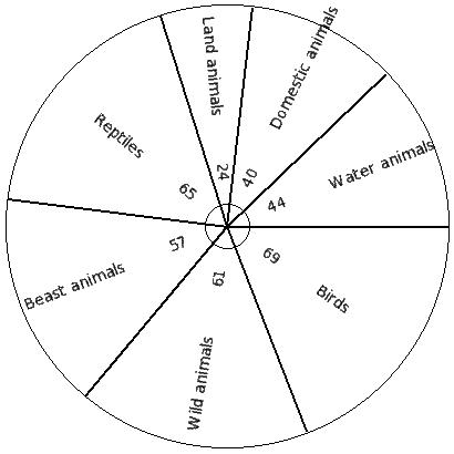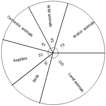There are 6030 creatures in a zoo as shown below. Find the pie chart sector angle for "Wild animals"