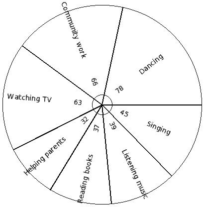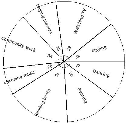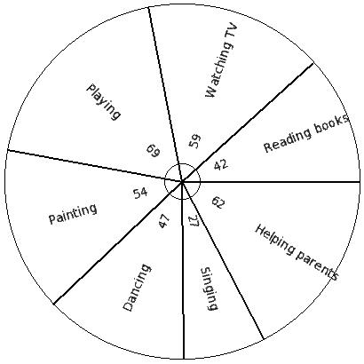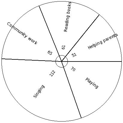 The table below shows the preferred free time activity of 810 school students. Find the pie chart sector angle for "Playing"