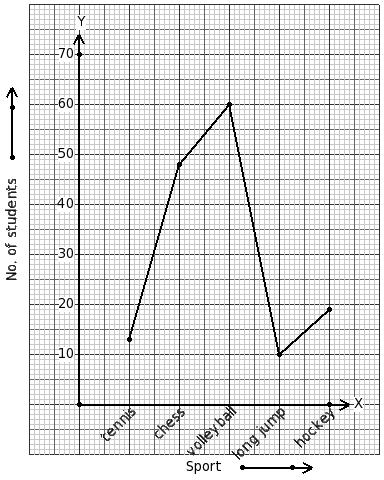 The following line graph gives data regarding the favourite sport of 150 students of a school. Identify the table for the given line graph.