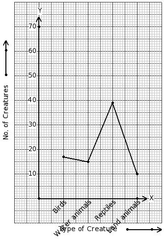 There are 81 creatures in a zoo as shown in the line graph. Identify the table for the given line graph.