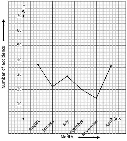 Given below is a line graph showing the number of accidents in a city during the given months of a certain year. Identify the table for the given line graph.