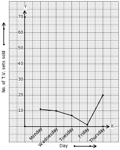 The number of T.V. sets sold by a shop in a certain week is given below. Identify the table for the given line graph.