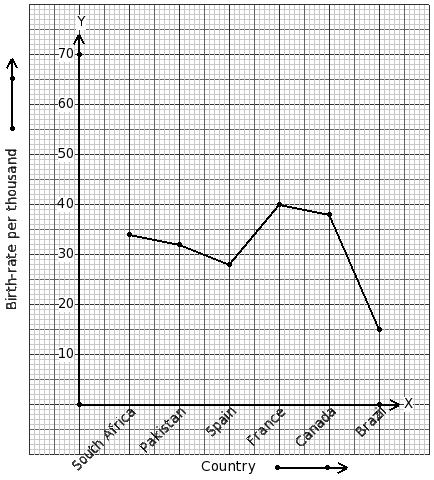 The birth-rate per thousand of 6 countries over a period of time is shown below. Identify the table for the given line graph.