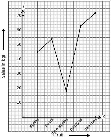 The below graph gives a comparative account of sales(in kg) of various fruits on a certain day. Identify the table for the given line graph.