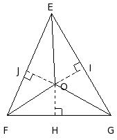 In the given figure, in △EFG, 'O' is a point inside the triangle. OH ⟂ FG, OI ⟂ EG and OJ ⟂ EF. Then
