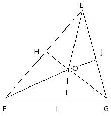In the given figure, EFG is a triangle and 'O' is a point inside △EFG. The angular bisector of ∠FOE, ∠GOF & ∠EOG meet EF, FG & GE at H, I & J respectively . Then