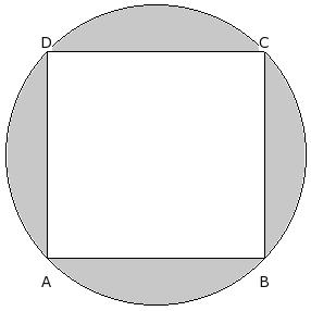 In the given figure, the circle circumscribes a rectangle with sides 20.00 cm and 19.00 cm. Find the area of the remaining portion other than the rectangle