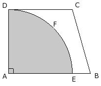 In the given figure , ABCD is a trapezium. A quarter circle AEFD is removed from the trapezium. If AD = CD = 13 and EB = 3.7 , find the area of the remaining portion