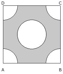 In the given figure, ABCD is a square of side 19.00 cm . At the centre there is a circle with radius 4.75 cm and the same circle quadrants are at the four corners. Find the area of the shaded region.