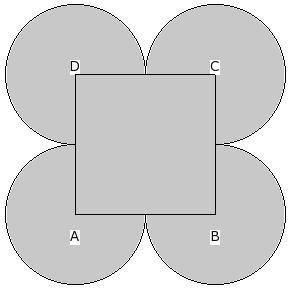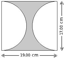 In the given figure, ABCD is a square of side 19.00 cm and A, B, C, D are the centres of circular arcs, each of radius 9.50 cm. Find the area of the shaded region