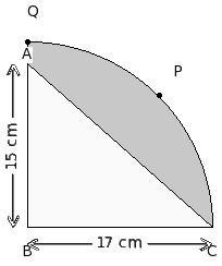 In the given figure, BC = 7 cm and AB = 13 cm. Find the area of the shaded region
