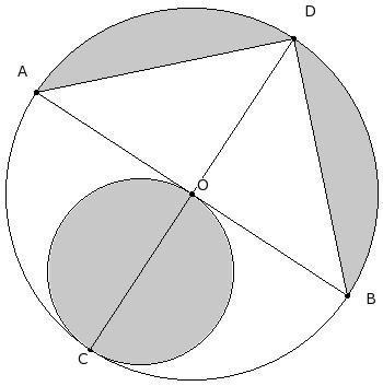In the given figure, the circle circumscribes a rectangle with sides 19.00 cm and 13.00 cm. Find the area of the remaining portion other than the rectangle