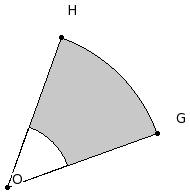 In the given figure, arcs of two concentric circles of radii 16.00 cm and 6.40 cm are drawn with center O. If ∠GOH = 50°, find the area of the shaded region