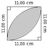 Find the area of the shaded region in the given figure common between the two quadrants of circles of radius 11.00 cm each