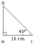 In the given figure, △GHI is right angled at H. If HI = 10 cm and ∠I = 45°, find GH and GI
