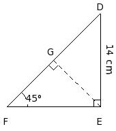 In the given figure, △DFE is right angled at E. If DE = 14 cm and ∠F = 45°, find DF